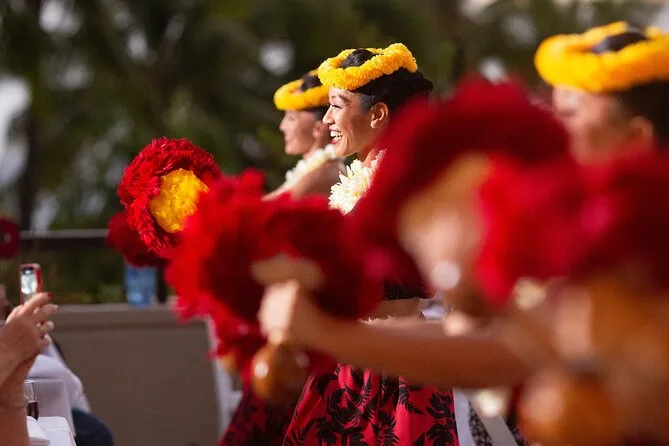 Prueba platos clásicos hawaianos como kalua pork y poke en un buffet premium en Waikiki, disfruta cócteles artesanales y un show íntimo de luau. Observa a artesanos locales hacer leis de cerca, participa en el hula previo si quieres, y déjate llevar por cantos y relatos que se quedan contigo mucho después.