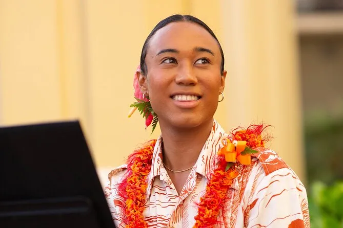 Lo primero que me llamó la atención en el Luau Nā Lei Aloha en Waikiki no fue la música ni los bailarines, sino el aroma. Un cálido y dulce olor a plumeria proveniente de la mesa donde hacían leis se mezclaba con un aroma salado que venía del buffet en el piso de arriba. Nuestra anfitriona, Leilani (tenía una manera muy suave de pronunciar tu nombre), me entregó un lei y se rió cuando intenté decir “aloha” bien — al parecer, mi acento necesitaba práctica. Pero lo dijo guiñándome un ojo, así que no me sentí mal.