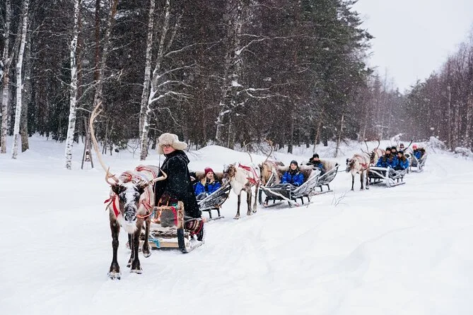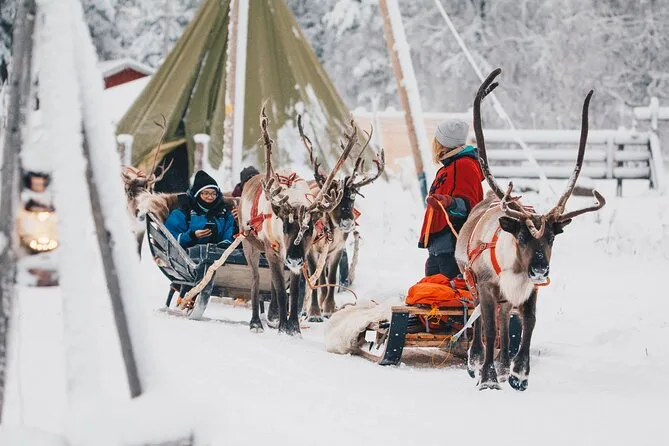 Deslízate por bosques nevados en un trineo de renos acompañado por un guía local que comparte historias de la vida en Laponia. Calienta el cuerpo en una cabaña acogedora con bebidas calientes y snacks mientras los renos descansan cerca. Incluye traslados desde Rovaniemi y ropa de invierno completa — te irás sintiendo parte de una pequeña tradición ártica.