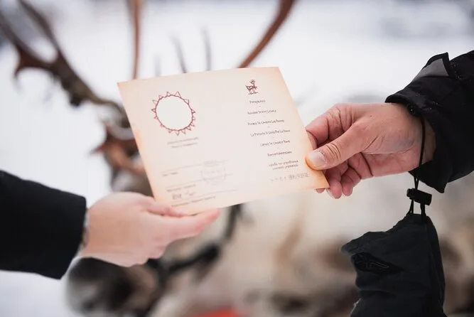 Después llegamos a una granja de renos donde el aire olía a humo de leña y algo dulce, ¿heno tal vez? Los renos eran más tranquilos de lo que esperaba, solo nos miraban parpadeando mientras intentábamos sentarnos en el trineo sin parecer ridículos (yo no lo conseguí). Mi amiga consiguió una “licencia de conductor de trineo de renos” que la hizo sentirse muy orgullosa, aunque casi se cae. Luego nos esperaba un jugo caliente dentro de una pequeña cabaña, con sabor a frutos del bosque que calentó mis manos al instante. Uno de los pastores nos contó cómo fue crecer aquí; dijo que a veces aún se pierde en el bosque después de tantos años. Eso me quedó grabado.