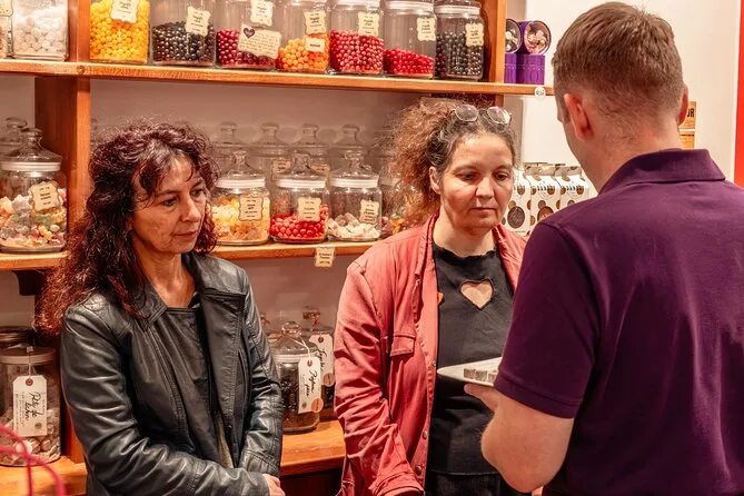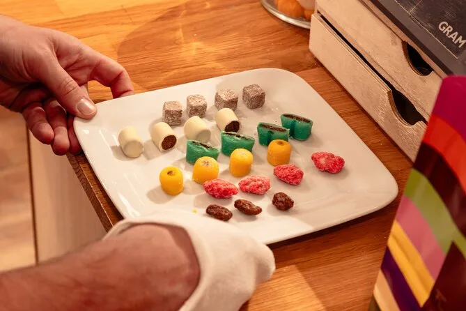 No soy muy de postres, pero la praluline me conquistó. Azúcar rosa por todas partes — dedos pegajosos, olor dulce a almendra que se quedó en mi chaqueta después de salir de la confitería. También probamos los coussins y los petits pavés; probablemente debería haber parado, pero ya sabes cómo es cuando todos pasan platos para compartir. Para cuando llegamos a la última chocolatería, apenas podía saborear otra cosa que no fuera chocolate y felicidad. A veces todavía sueño con ese primer bocado.