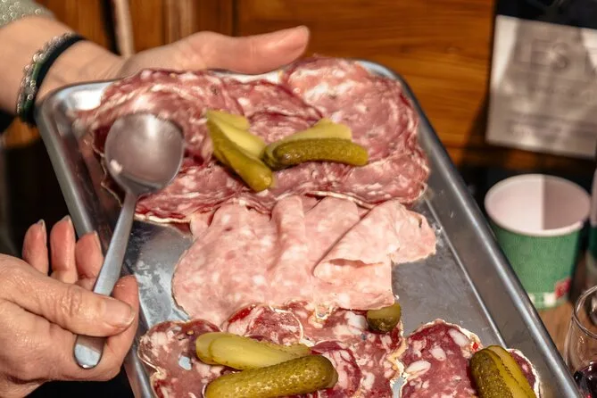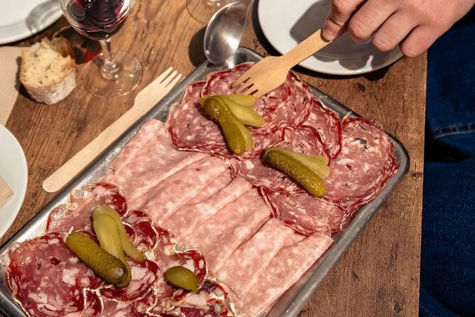 Tu día incluye degustaciones guiadas de platos clásicos de Lyon como quenelle y charcutería en bouchons locales, cata de vino Côtes du Rhône con un sommelier reconocido, paradas en confiterías para probar brioche praluline y dulces regionales, además de agua durante todo el recorrido — todo acompañado por un guía local experto que te espera en un punto fácil de encontrar en el Vieux Lyon antes de compartir la comida como parte de la experiencia.
