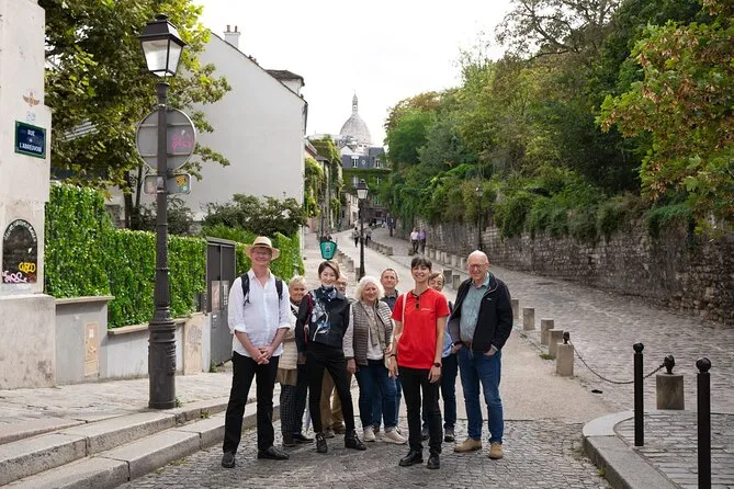 Tu día incluye encontrarte con tu guía local de habla inglesa cerca del Moulin Rouge y recorrer juntos las calles empedradas de Montmartre. Probarás un croissant de mantequilla premiado en una de las mejores panaderías de París, harás paradas para disfrutar de vistas panorámicas que solo conocen los locales, pasarás por la antigua casa de Picasso y las viñas frente al cabaret Le Lapin Agile, y terminarás en la basílica de Sacré-Cœur, todo en un ambiente relajado y en grupo pequeño.