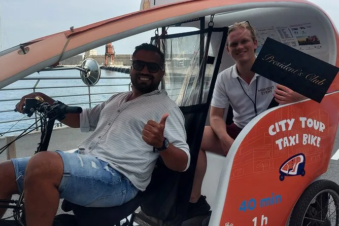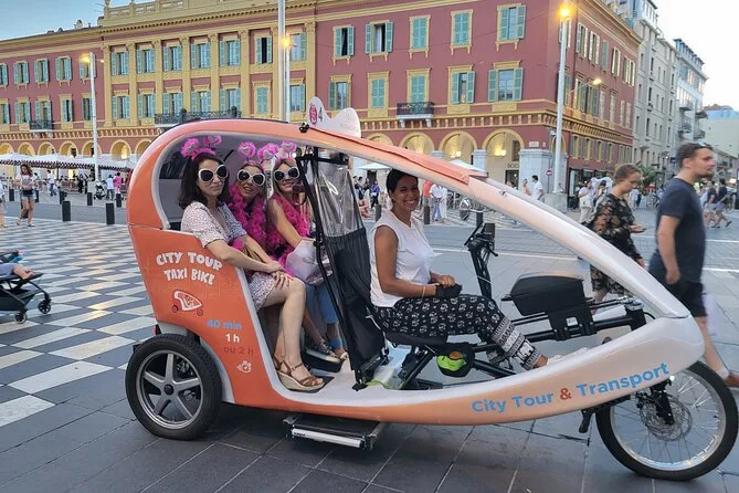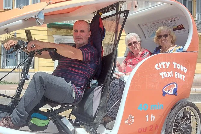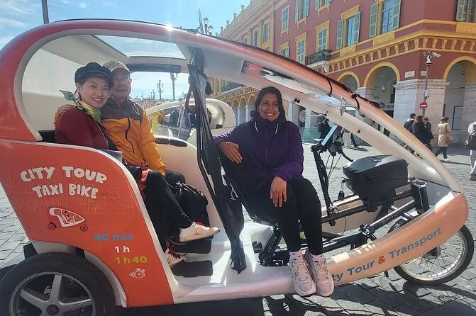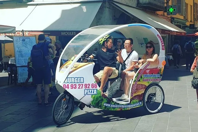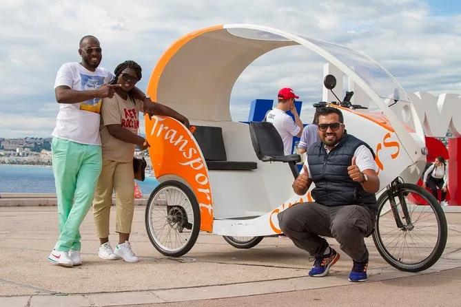 Tu día incluye transporte privado en un bicitaxi moderno con WiFi, recogida y regreso en hotel o apartamento en el centro de Nice, comentarios en vivo de un guía local amable (más audio multilingüe si quieres), paradas flexibles para fotos cuando quieras y muchas historias entre cada punto mientras recorres la ciudad juntos.