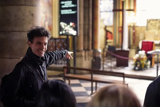 No, solo verás Notre-Dame desde afuera; el guía te explicará cómo visitarla por tu cuenta.