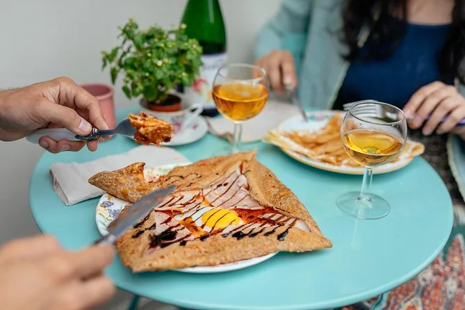 Tu día incluye un guía local foodie privado y multilingüe que te llevará por seis o diez degustaciones seleccionadas de productos locales de alta calidad (según tu reserva), con tablas de queso que incluyen tres tipos de queso y dos tipos de embutidos, quiche Lorraine fresca y crêpes dulces. También visitarás puntos destacados de la ciudad entre paradas. Hay opciones vegetarianas si se solicitan con anticipación. La experiencia es carbono neutral y apta para todos los niveles físicos — solo trae hambre.
