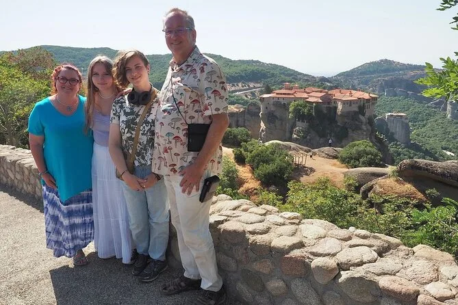 El itinerario incluye Termópilas (con la estatua de Leónidas), varios monasterios de Meteora (como Varlaam), Kalabaka para un café, el pueblo de Arachova para fotos o souvenirs, el yacimiento arqueológico y museo de Delfos, y el pueblo de Distomo.