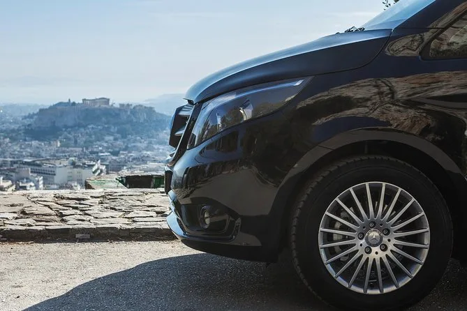Tu traslado privado incluye recogida en tu hotel o apartamento en Atenas por un conductor local que te ayudará con las maletas, agua embotellada en un coche o furgoneta con aire acondicionado (y WiFi gratis), y te dejará justo en la puerta de tu barco en el puerto de El Pireo—todo coordinado para que no tengas que preocuparte por perder el ferry.