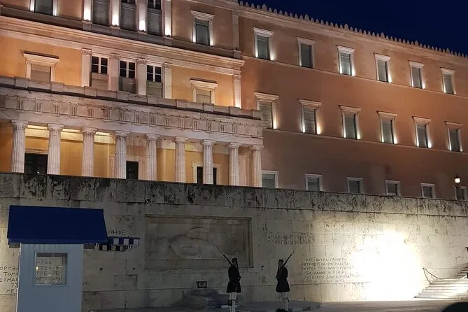 Vive Atenas al caer el día: observa a los guardias Evzones en Plaza Syntagma, pasea por Plaka bajo la Acrópolis, explora el bullicioso Monastiraki con un guía local y termina con comida y vino griego en Psiri. Una noche llena de historias, sabores y ritmos urbanos que recordarás mucho después de que tu plato esté vacío.