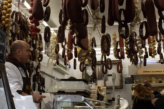 Tu día incluye todas las degustaciones — más de 20 alimentos como quesos, embutidos, pasteles y dulces — además de aceite de oliva y miel directamente de los productores. Disfrutarás una comida meze sentada con opciones de pescado o carne (también vegetariana), acompañada de vino local u ouzo. También probarás café griego y yogur antes de despedirte cerca de Monastiraki.