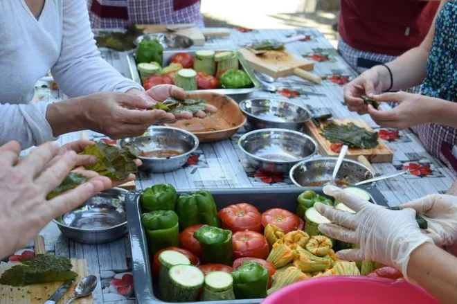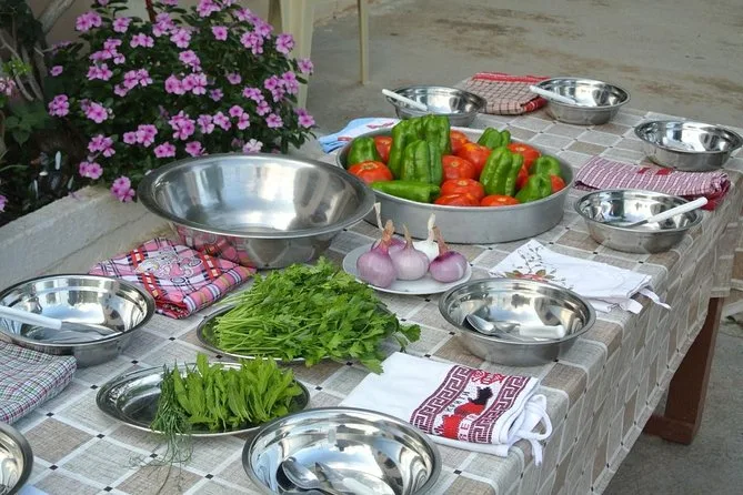 Tu velada incluye todas las tasas y cargos, transporte de ida y vuelta desde tu hotel en Chania en minibús o minivan con aire acondicionado, una clase práctica en grupo reducido con todos los ingredientes, degustación de vino y queso en la casa, la guía de una cocinera local amable, además de recetas y fotos enviadas por correo electrónico después. ¡Accesible para sillas de ruedas también!