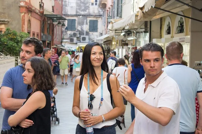 Tu día incluye encuentro con tu guía certificado en la estatua de la Antigua Fortaleza para un paseo guiado por el centro histórico de Corfú con paradas para probar empanadas griegas, ginger beer, una degustación de aceite de oliva con explicación de especias por un vendedor local, visitas a lugares emblemáticos como la Plaza Spianada y la iglesia de San Spiridón, y termina con un almuerzo relajado con pastitsada y ouzo antes de continuar por tu cuenta.