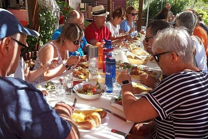 ¿Lo mejor? El almuerzo en otro pueblo en la ladera — largas mesas de madera bajo parras, platos con pan y queso, tomates tan dulces que casi no necesitaban sal. Alguien me sirvió más vino del que esperaba (no conducía). La vista hacia la costa norte parecía de otro mundo. Aún recuerdo la brisa que subía del valle mientras nos quedábamos en silencio un rato. De regreso a Hersonissos, todo parecía más tranquilo — quizás cansados o simplemente satisfechos.