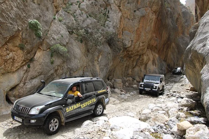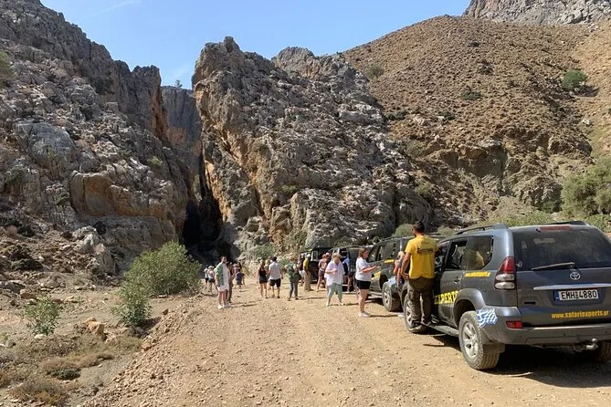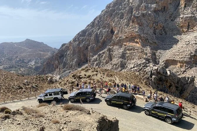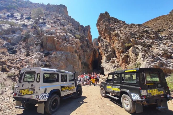 Tu día incluye recogida y regreso al hotel en vehículo 4x4 con combustible incluido, un guía local experto durante todo el recorrido, tiempo para un café o paseo en un pueblo tradicional cretense, acceso al lago Zaros y al desfiladero Trypiti, baño en la playa Trypiti y un completo almuerzo con BBQ cretense, vino y agua antes de volver cómodamente a tu hotel.