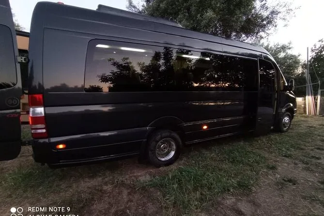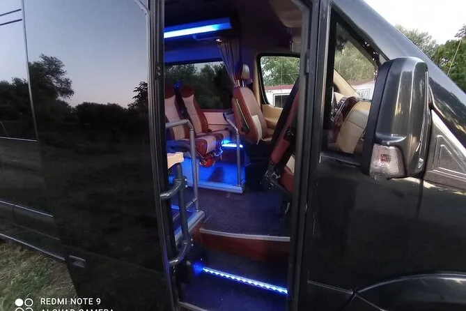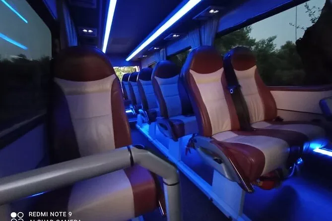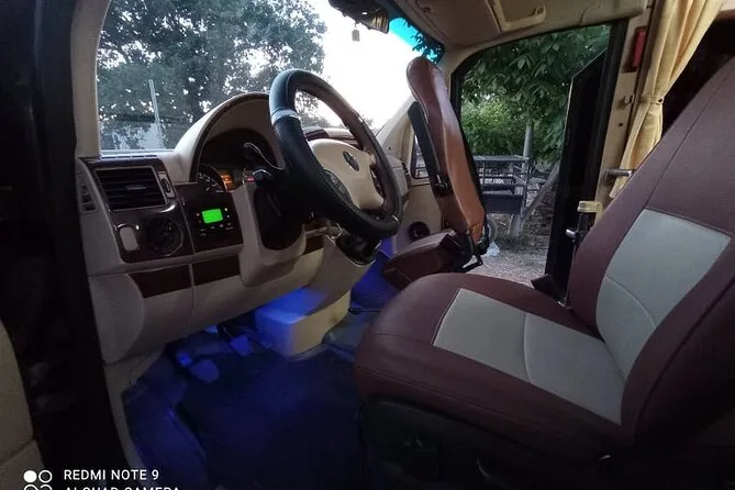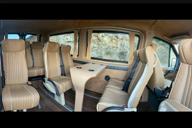 Tu traslado privado incluye recogida en el aeropuerto o puerto de Heraklion o Chania por un conductor local licenciado, viaje en vehículo con aire acondicionado para hasta 11 personas, Wi-Fi gratis durante todo el recorrido, agua embotellada para todos, todos los impuestos y tasas incluidos, además de medidas de seguridad como desfibrilador móvil y caja fuerte para dinero — solo tienes que relajarte y disfrutar de las vistas de Creta desde la ventana.