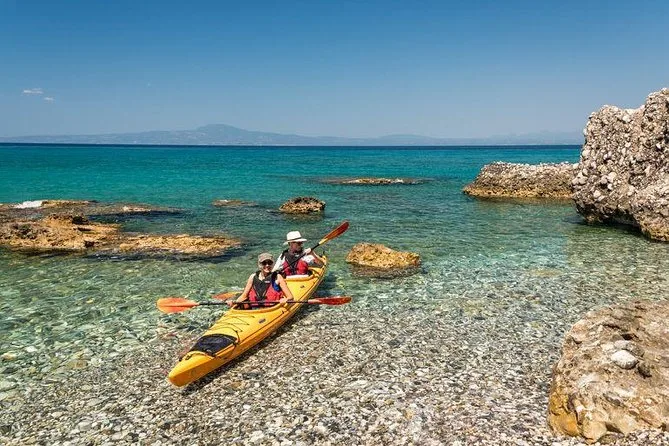 Tu día incluye todo el equipo de kayak (barca, remo, chaleco salvavidas), guía local certificado BCU durante todo el recorrido desde Kalamata por la costa de Mani Oeste—con muchas historias en el camino—un picnic con frutas y delicias tradicionales en una playa tranquila (con tiempo para nadar o hacer snorkel), seguro de responsabilidad para que disfrutes sin preocupaciones, todos los impuestos incluidos desde el inicio y fotos de tu aventura para que no tengas que preocuparte por mojar tu móvil.