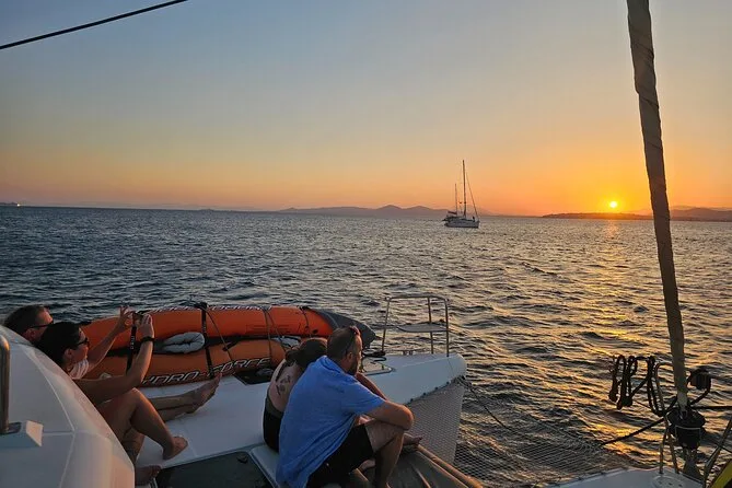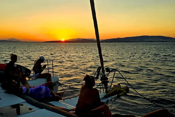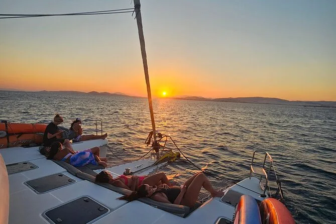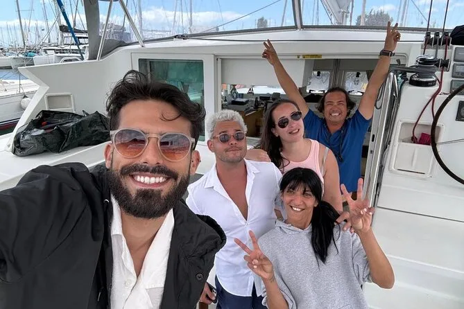 Navega por la Riviera de Atenas en un catamarán pequeño con tripulación local amable, haciendo paradas para nadar en bahías cristalinas y disfrutar de una comida griega sencilla con vino. Ríe durante el almuerzo en Prasonisi y vive momentos de calma flotando en Vouliagmeni — no es un tour cualquiera, es como pasar el día con viejos amigos en el mar.
