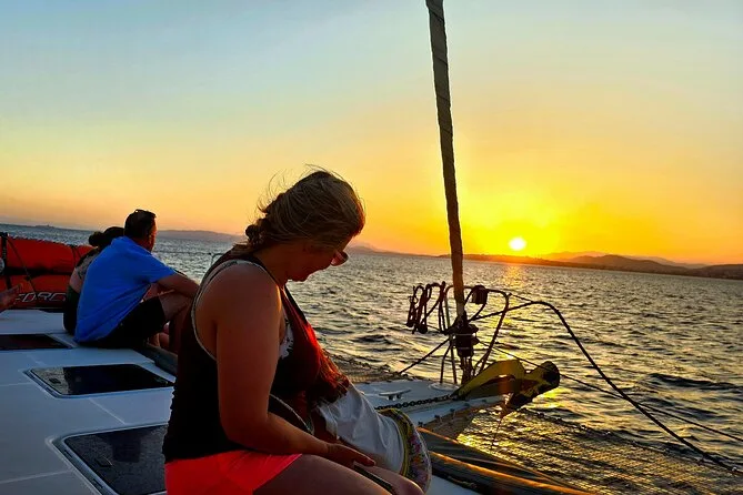 Me sigue viniendo a la mente ese último baño antes de volver — cómo el sol reflejaba en el agua y todo parecía dorado por un momento. Si buscas un paseo privado en catamarán por Atenas con comida incluida, este se siente más como un día con amigos que como una excursión formal. Y de repente estábamos de vuelta en el puerto de Alimos, con el pelo revuelto por el viento y el olor a mar aún en la piel.