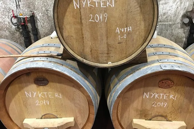 Probarás Assyrtiko, Aidani, Mavrotragano, Nychteri, Roze, Brousko, Mezzo, Vinsanto y más variedades locales.