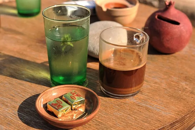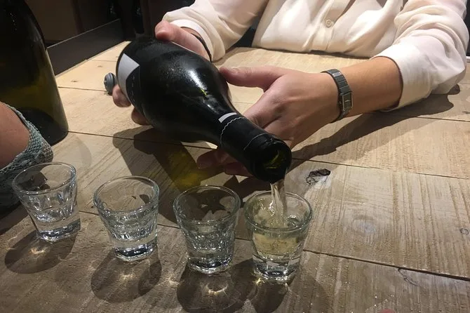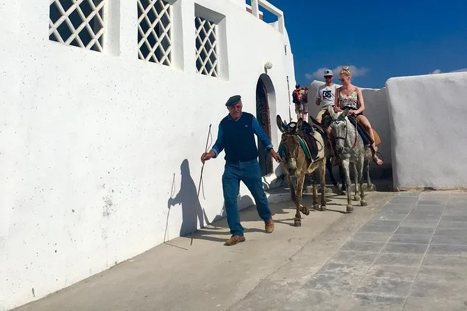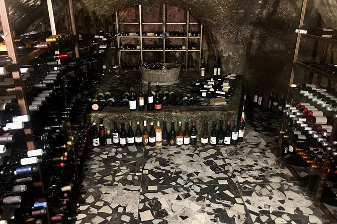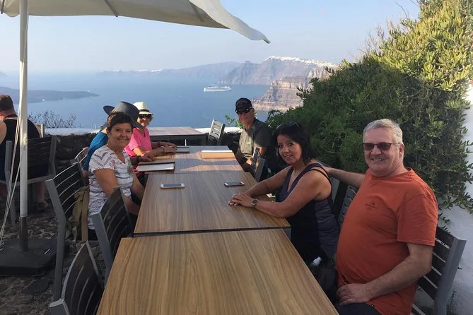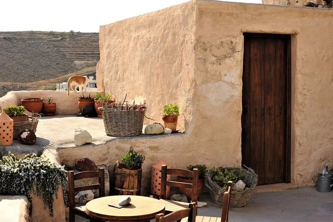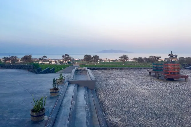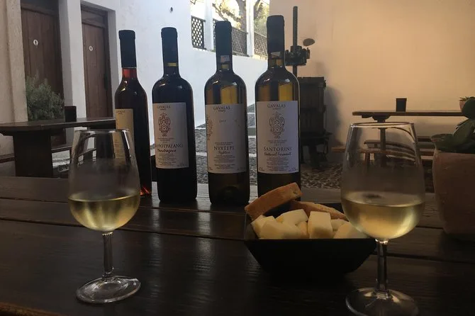 Tu día incluye recogida en hotel en una Mercedes Vito Tourer con aire acondicionado y WiFi; visitas guiadas a tres bodegas de Santorini; doce catas de vino local; snacks tradicionales como tomates secos y dip de fava; bebidas alcohólicas; y una caja de regalo con ouzo antes de regresar tras el atardecer en Oia.