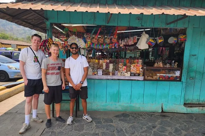 El camino hacia San Felipe de Jesús fue corto pero animado; pasamos junto a un grupo de niños que nos saludaban desde detrás de un muro pintado con colores vivos. El mercado de artesanías allí estaba lleno de vida sin ser turístico: talladores de madera con las manos teñidas por su trabajo, vendedores de dulces riendo mientras envolvían golosinas en papeles brillantes. Hubo un momento en que una mujer nos ofreció algo llamado “fresco de suchiles” (la versión guatemalteca de la kombucha, al parecer), y dudé porque las bebidas fermentadas no son lo mío. Pero era ácido, frío y honestamente perfecto después de pedalear con pantalones largos (que querrás usar para protegerte de los mosquitos). Ahora, cada vez que huelo levadura, me acuerdo de ese sabor.