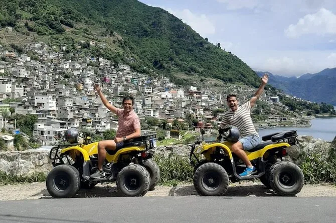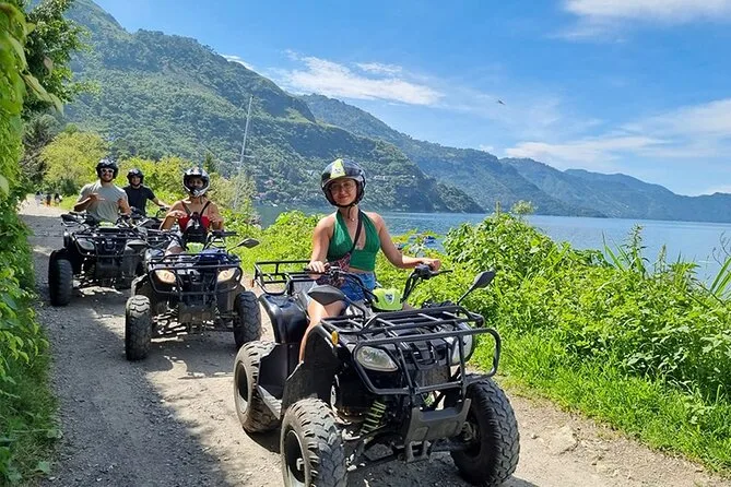 Recorrerás en ATV desde Panajachel por los caminos del Lago Atitlán para visitar Santa Catarina Palopó y San Antonio Palopó. Prueba café recién molido, observa a tejedores y ceramistas locales en acción, y disfruta junto al lago con los habitantes antes de regresar — una experiencia vibrante, auténtica y muy especial.
