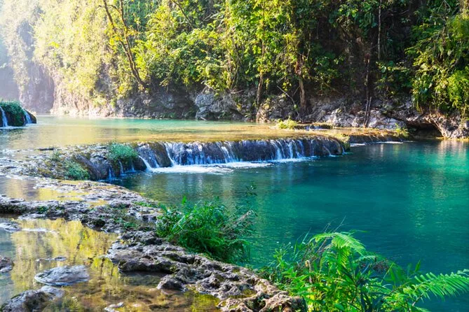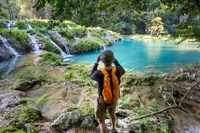 Comienza tu día en Panajachel, junto al Lago Atitlan, y súbete a un shuttle compartido rumbo a Semuc Champey. Tendrás dos paradas relajadas para snacks o estirar las piernas, un viaje con aire acondicionado atravesando paisajes cambiantes, y bajada justo donde la mayoría de hoteles recogen en Lanquin. Más que transporte, es una ventana a la Guatemala cotidiana.