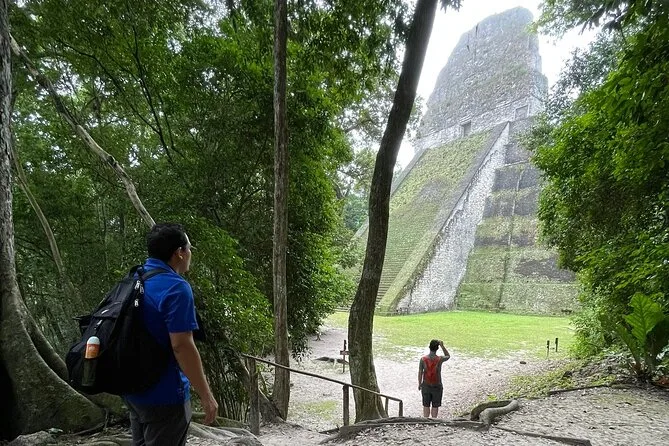 Tu día incluye recogida flexible en tu hotel o aeropuerto en Flores en un vehículo con aire acondicionado (con seguro), agua embotellada durante el trayecto y un guía local experto en inglés o español que te acompañará por las ruinas de Tikal antes de devolverte cómodamente a la ciudad por la tarde.