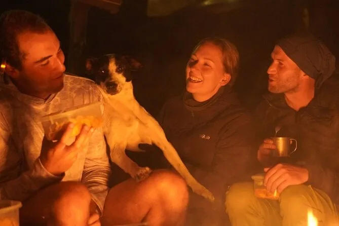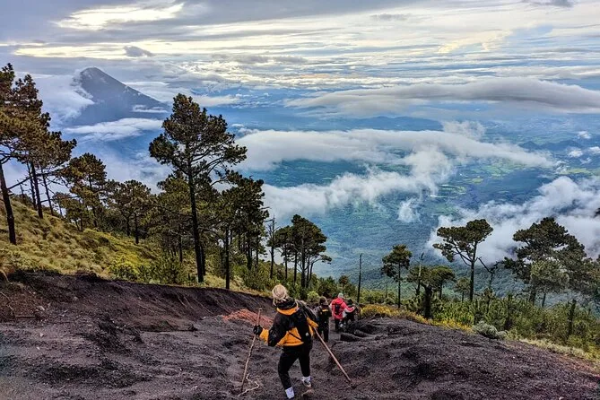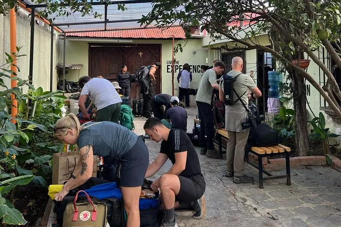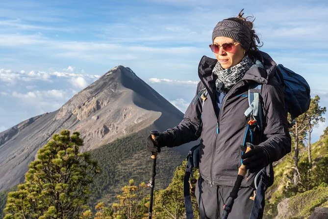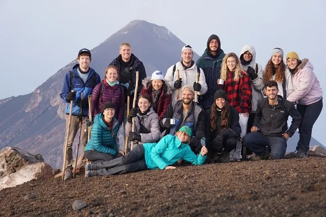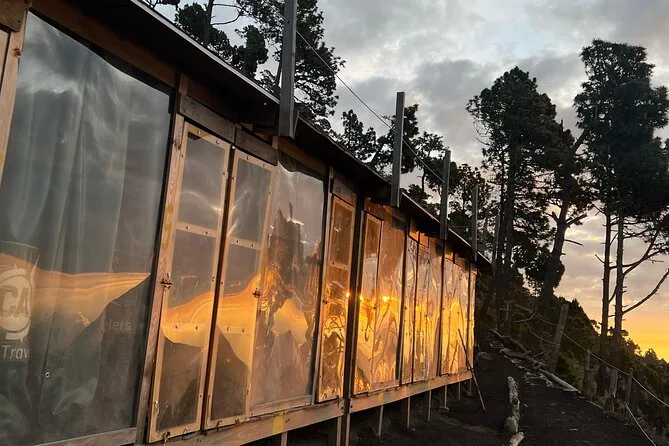 Tu aventura nocturna incluye transporte desde la oficina de CA Travelers cerca de Antigua, todas las entradas y impuestos, almuerzo y cena abundantes, además de desayuno antes y después del ascenso a la cima. Recibirás equipo de campamento preparado: saco de dormir cálido dentro de una tienda protegida por una cabaña de madera, además de chaquetas, guantes, impermeable si hace falta, linterna para los inicios temprano o las noches viendo el volcán (créeme: lleva calcetines extra). También tendrás tres litros de agua en un sistema Camelbak para no quedarte sin hidratación en las curvas del camino.