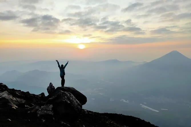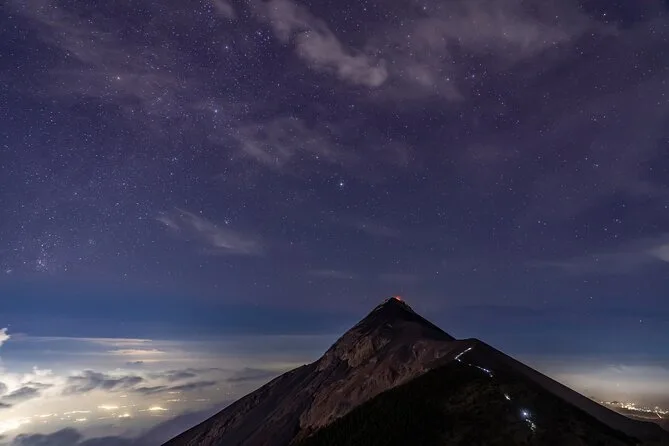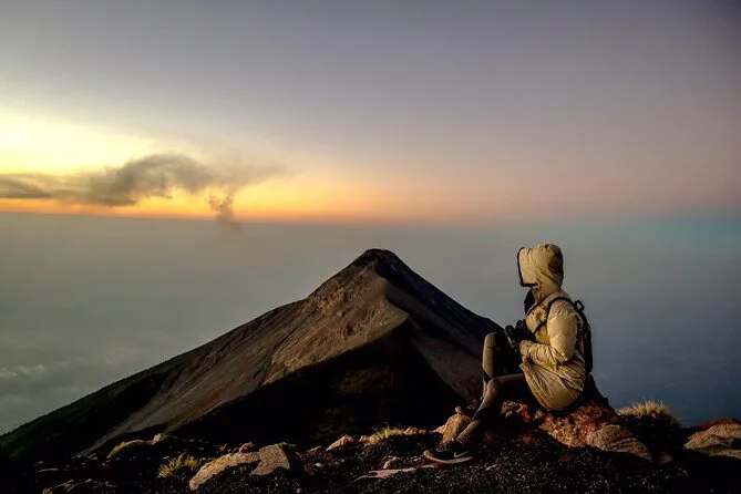 Subirás el Acatenango con guías locales desde San José Calderas, verás las erupciones del Fuego al atardecer, compartirás auténtico chocolate guatemalteco en el campamento y madrugarás para ver el amanecer desde la cima. Prepárate para risas, frío y calor, comidas abundantes y esa sensación única de estar sobre las nubes al comenzar el día.