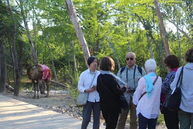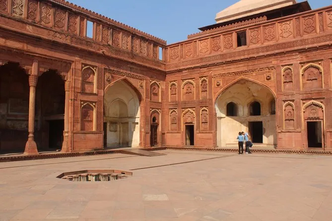 Tu coche privado con aire acondicionado y conductor uniformado te recoge directamente en tu hotel o lugar elegido en Agra. Un guía local experto te acompaña en todas las visitas; la entrada al Taj Mahal incluye paseos en tuk tuk o bus eléctrico para evitar largas caminatas bajo el sol. Incluye agua embotellada y servilletas, además de flexibilidad para pausas o paradas extra si lo deseas.