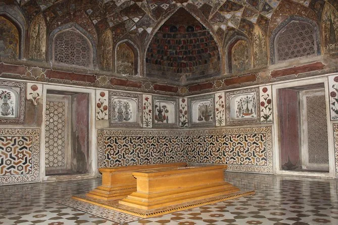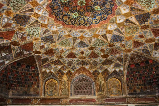 Por la tarde visitamos la tumba de Itmad-ud-Daulah, conocida como el “Baby Taj”. Aquí hay menos gente, lo que permite escuchar los pájaros en los jardines y oler jazmín en los arbustos cercanos. Nuestro guía explicó cómo esta tumba inspiró partes del Taj Mahal. El mármol está cubierto de tallados delicados; si te fijas bien, verás pequeñas piedras semipreciosas incrustadas en los diseños.