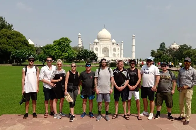 Te recogerán directamente en tu hotel o estación de tren para un día explorando los puntos destacados de Agra—el Taj Mahal con su mejor luz, historias dentro del Fuerte de Agra, un delicioso almuerzo local y tiempo para comprar artesanías únicas antes de regresar.