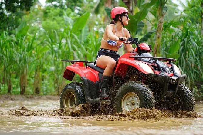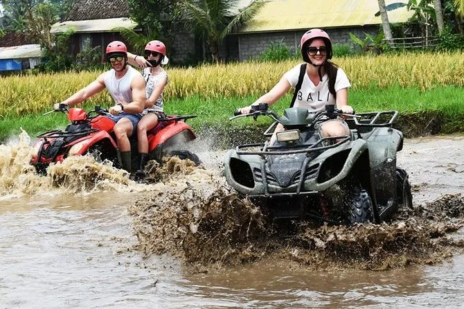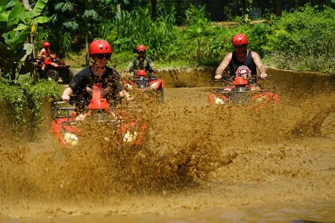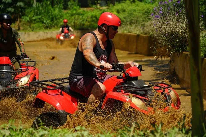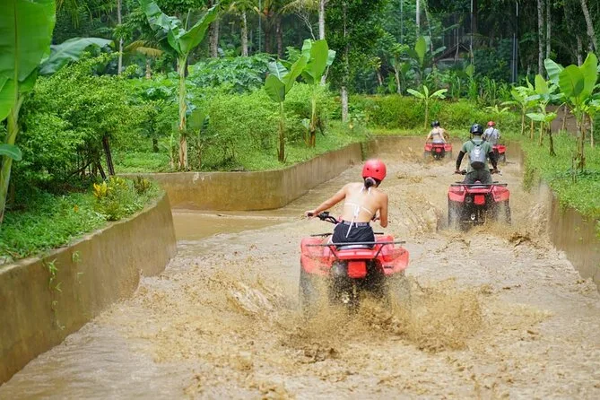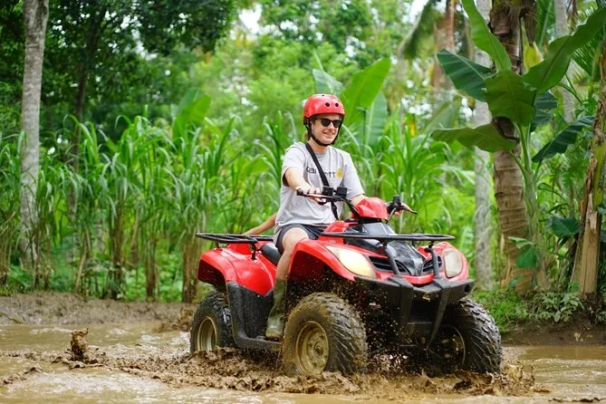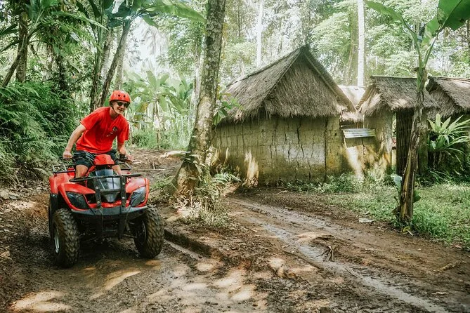 Tu día incluye traslado privado de ida y vuelta desde el hotel en coche con aire acondicionado, todo el equipo de seguridad (casco y botas), instrucciones de guías locales profesionales antes de recorrer durante unas dos horas bosques y aldeas con paradas en una cascada y la Cueva del Gorila. Al terminar, podrás usar toallas y duchas antes de disfrutar un almuerzo con menú indonesio — además de seguro incluido durante toda la aventura.