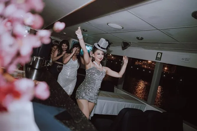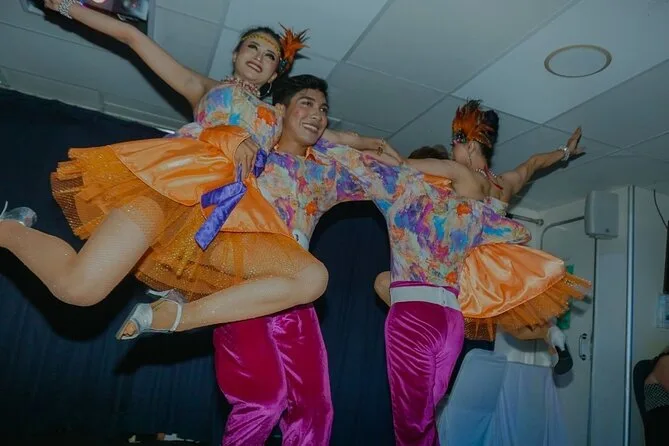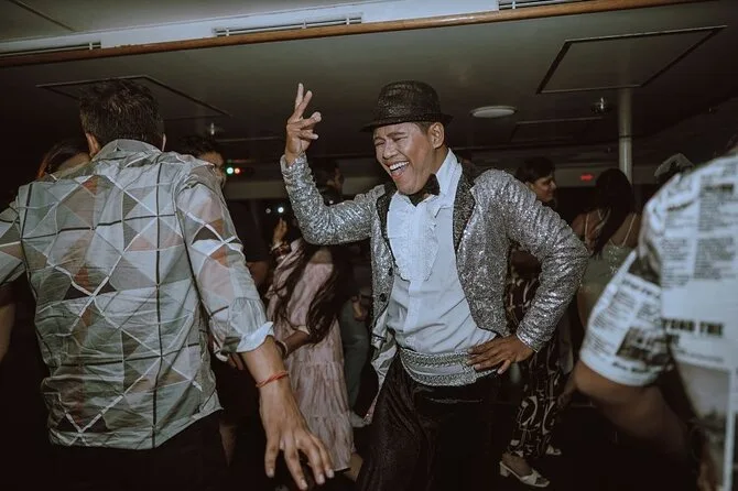 Luego llegó la comida — buffet sencillo, nada lujoso pero tan bueno que repetí (los pinchos de satay volaron rápido). Hubo un momento en que todos pausamos para ver el cielo volverse naranja y morado sobre el agua. Alguien detrás empezó a tararear “Stand By Me” con la banda. Después vino el show de cabaret — lentejuelas por todos lados, risas que se reflejaban en el agua. No soy muy de bailar, pero terminé de pie igual. Así que no, no fue perfecto ni privado ni silencioso, pero a veces todavía recuerdo esa vista desde la cubierta superior.
