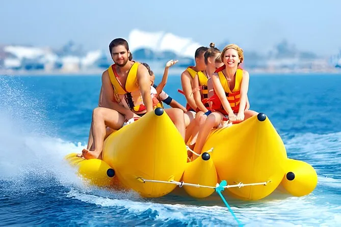 El paquete incluye snorkel, parasailing, jet ski con instructor, paseo en banana boat, barco con fondo de cristal, fly fish, seawalker, buceo y más actividades marinas.