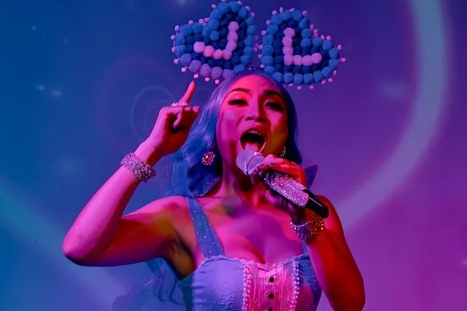 El drag show comenzó justo a las 8pm — purpurina por todos lados, voces cantando éxitos de Broadway (era domingo), pero también esos pequeños momentos en los que las artistas bromeaban con el público o invitaban a alguien a participar en un juego de trivia. Los viernes hacen lecturas de tarot, según nos contaron, pero nosotros caímos en la noche de teatro drag. Durante los descansos, Li nos enseñó a decir “gracias” y “delicioso” en lengua de señas — estoy seguro que al principio lo hice mal porque se rió y me lo mostró de nuevo, esta vez más despacio. Todo el lugar se sentía como una gran mesa familiar, con gente aplaudiendo o simplemente disfrutando en silencio con sus platos a medio terminar.