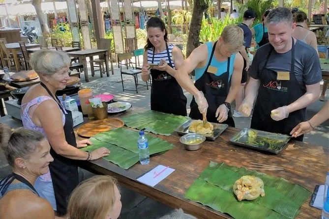 Comienza tu día en el animado mercado de Ubud con un guía local que conoce a todos los vendedores por su nombre. Tras recoger ingredientes frescos, cocinarás platos clásicos balineses — doblando hojas de plátano (no tan fácil como parece), probando salsas picantes y riendo por los pequeños errores. El almuerzo es lo que prepares, compartido en una mesa larga con nuevos amigos.