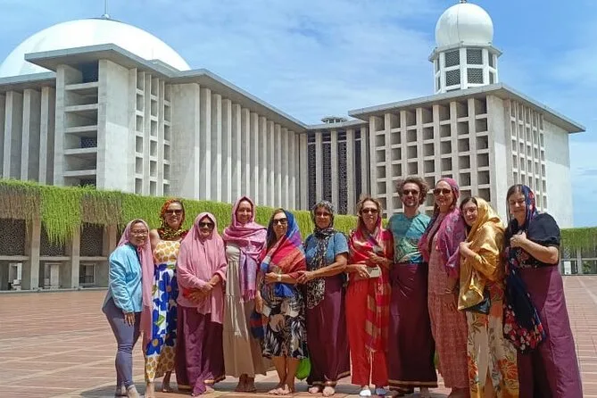 El tour visita Monas (Monumento Nacional), Museo Nacional (excepto lunes), Barrio Chino de Glodok, Catedral, Mezquita Istiqlal (exterior viernes), Templo Dharma Bhakti, taller de marionetas y puerto antiguo Sunda Kelapa.
