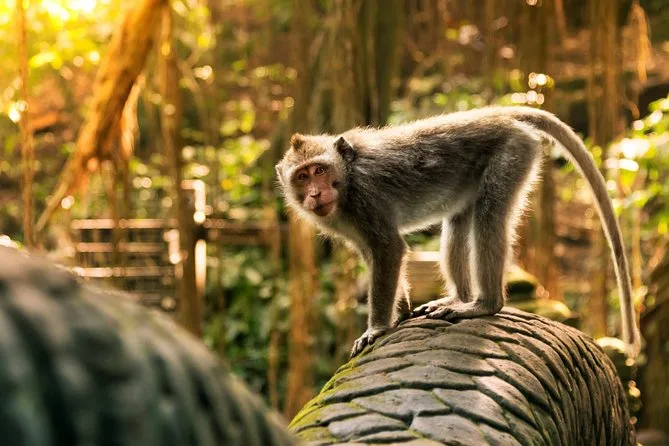 Los niños disfrutarán viendo los monos y los campos de arroz, pero hay algo de caminata y se requiere supervisión cerca de los animales y las piscinas del templo.