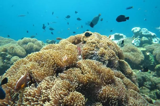 Podrás ver peces loro, anguilas cinta, pargos, peces rana, peces escorpión y muchas otras especies entre los corales.