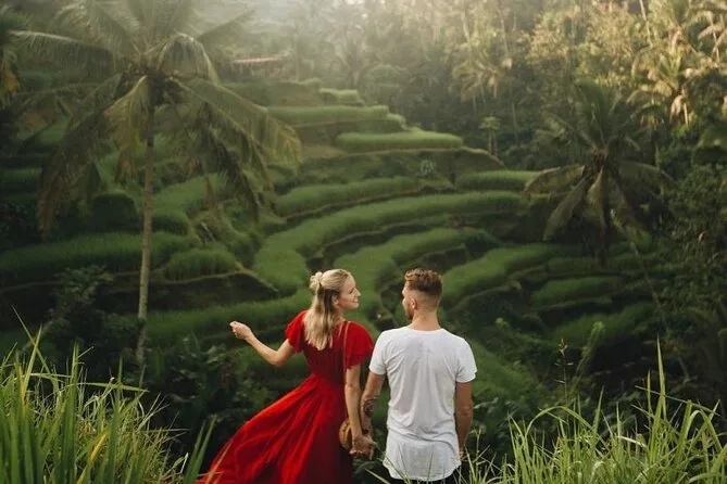 Explora el salvaje Bosque de Monos de Ubud (¡cuidado con tu mochila!), camina por las empinadas terrazas de arroz de Tegalalang junto a agricultores locales, participa en los rituales sagrados del templo Tirta Empul y prueba el famoso columpio sobre los valles verdes. Con almuerzo incluido y recogida en hotel, sentirás que te cuidan mientras te dejas llevar por el ritmo de Bali.