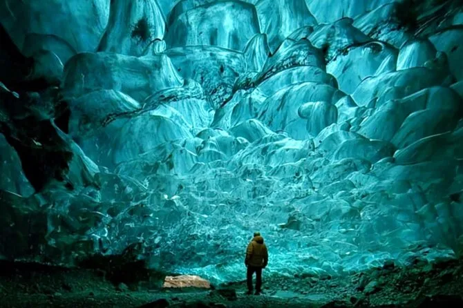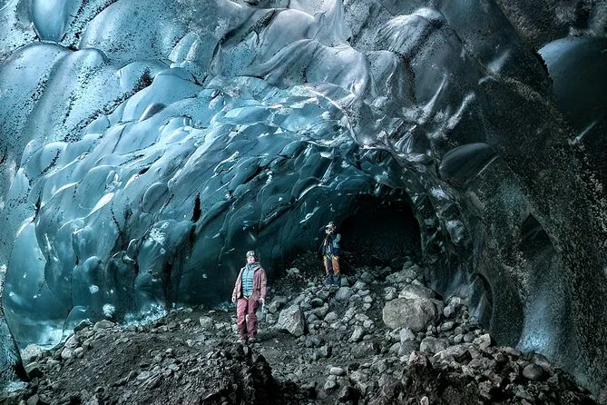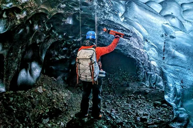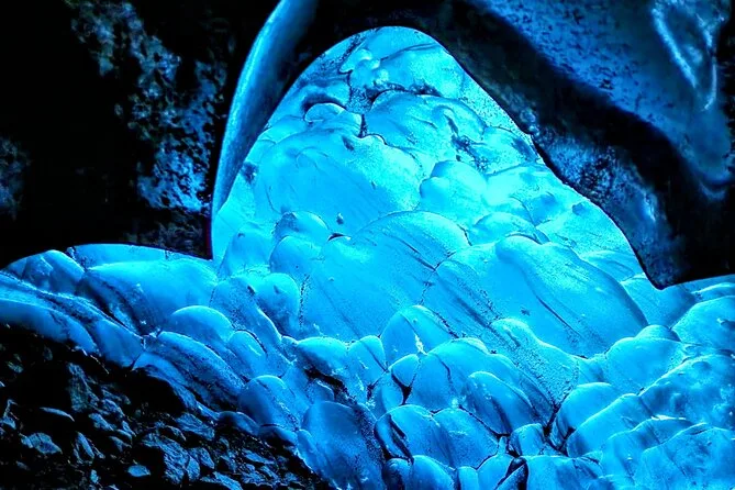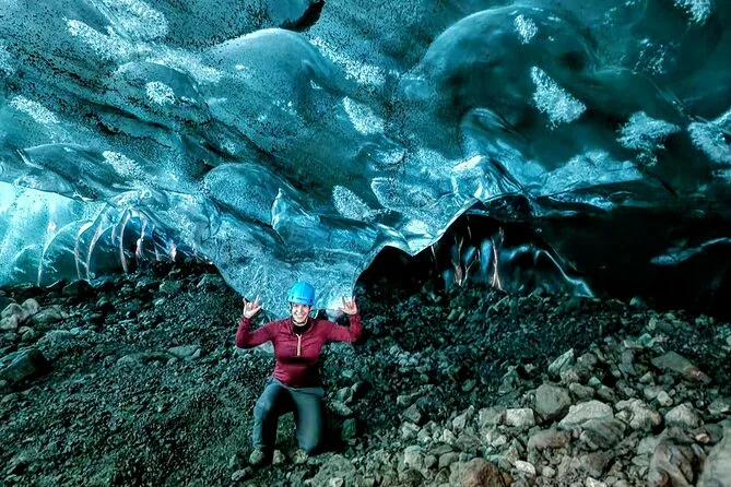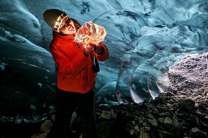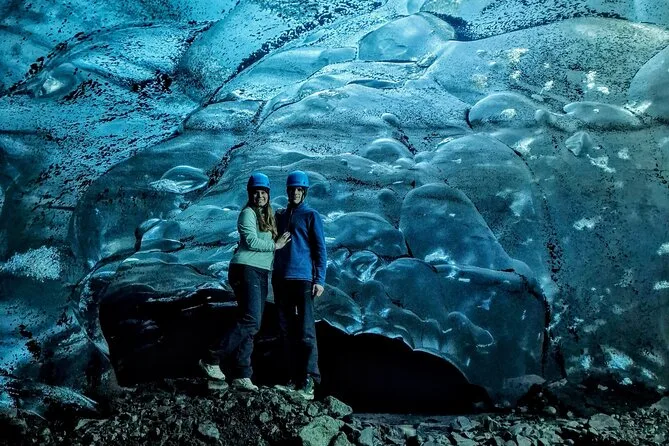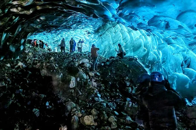 Tu día incluye recogida en la laguna glaciar Jökulsárlón, todas las entradas y tasas, además de la guía profesional local que te proporcionará casco, crampones, linterna y garantizará la seguridad mientras exploráis juntos las siempre cambiantes cuevas de hielo azul de Vatnajökull.