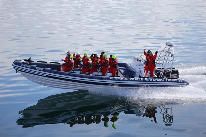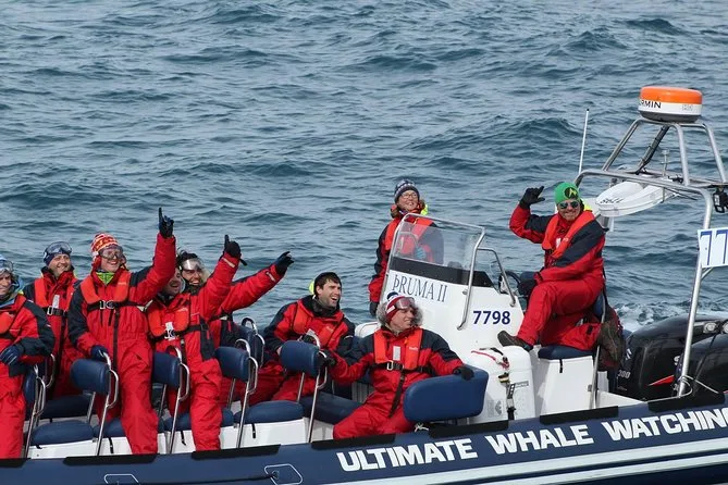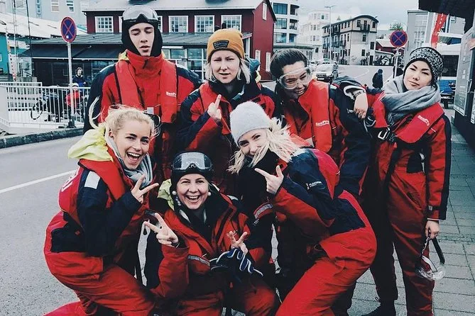 Tu día incluye todo el equipo de seguridad necesario como trajes térmicos y guantes, además de la guía de un biólogo marino profesional durante esta aventura en grupo pequeño por RIB desde el Puerto Viejo de Reykjavik—con paradas en islas de frailecillos (en temporada) y avistamiento cercano de ballenas antes de regresar bordeando la costa pasando por Sun Voyager y Harpa.