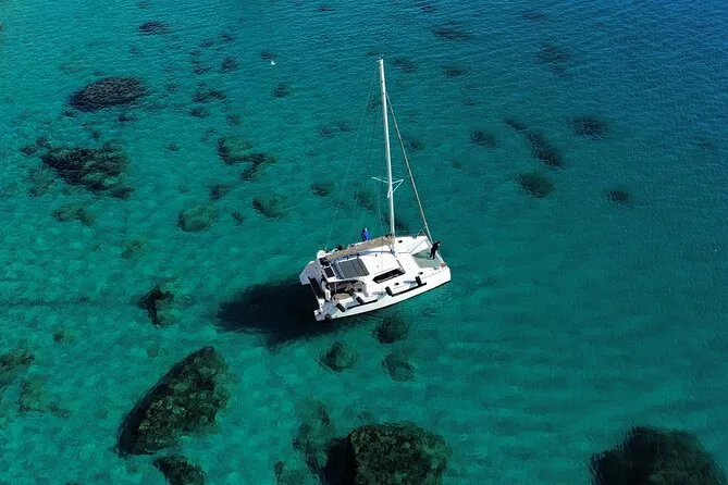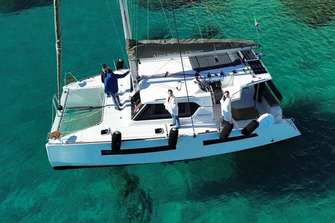Tu día incluye navegación desde el puerto de Cagliari en un catamarán cómodo con una tripulación local amable y capacitada en primeros auxilios (y sí, siempre con desfibrilador). Usarás equipo de snorkel incluido en las paradas para nadar, podrás flotar en tubos si quieres más apoyo, probarás snacks sardos junto con el brindis de prosecco, y se pueden organizar traslados si llegas desde un crucero o un hotel cercano.