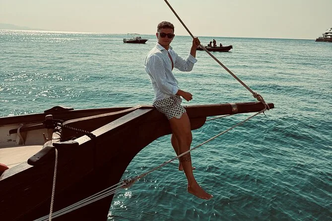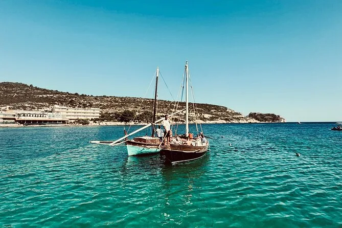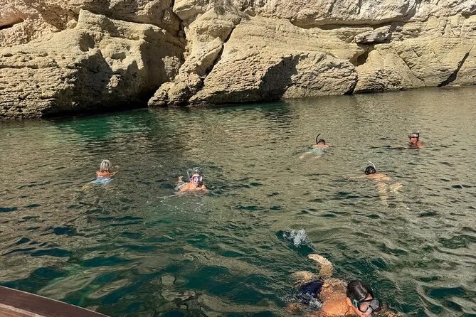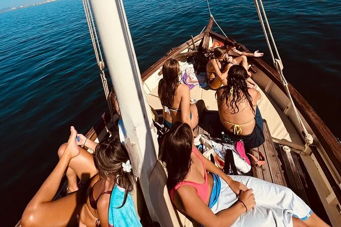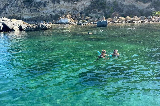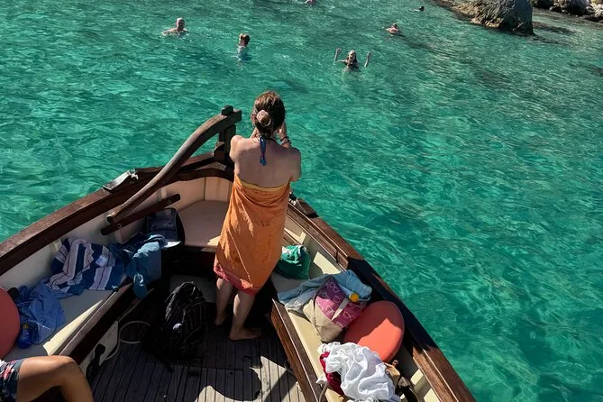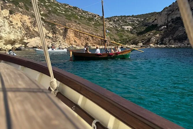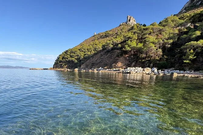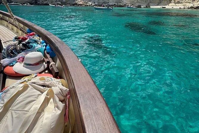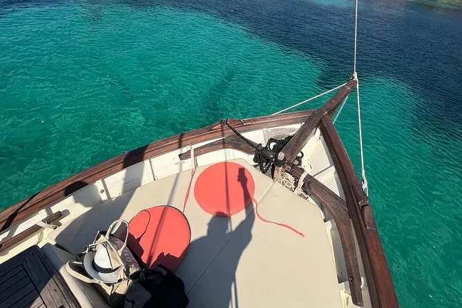 Navega desde Cagliari en un gozzo de madera con solo ocho personas, parando en cinco calas para nadar o hacer snorkel con equipo local. Prueba quesos y salumi sardos con vino frío durante un aperitivo a bordo mientras el guía comparte historias sobre Sella del Diavolo y la playa de Poetto. Risas, nuevos amigos y sabores auténticos que recordarás mucho tiempo.