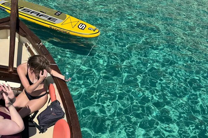 Hay una tabla de SUP disponible para quienes quieran explorar más durante las paradas.
