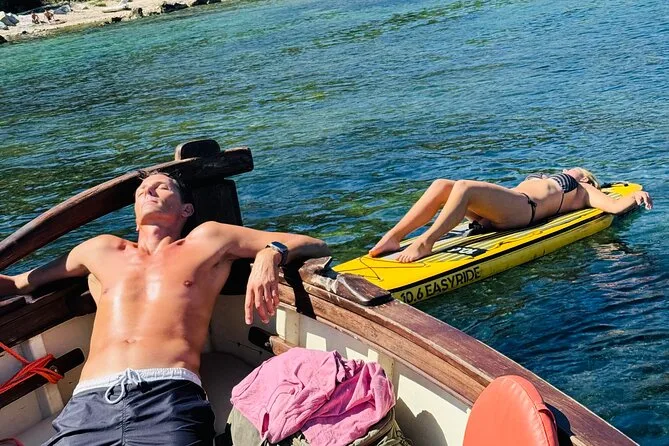 Tu día incluye salida desde el muelle de Cagliari en un gozzo clásico de madera con espacio para ocho personas; cinco paradas para nadar en calas como Cala Bernat y Sella del Diavolo; uso de equipo de snorkel y tabla de SUP; aperitivo a bordo con salumi sardo, queso pecorino y pan guttiau; además de vino blanco o prosecco frío para relajarte entre baños—todo guiado por un patrón local antes de regresar al puerto.