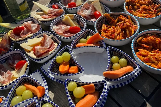 Incluye salumi local, queso pecorino, pan guttiau y una copa de vino blanco o prosecco.