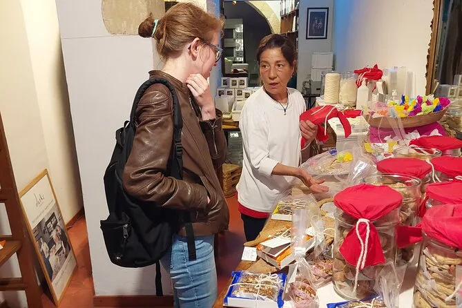 Probarás dulces, embutidos como pecorino y prosciutto, platos tradicionales como fregola, snacks callejeros y café.